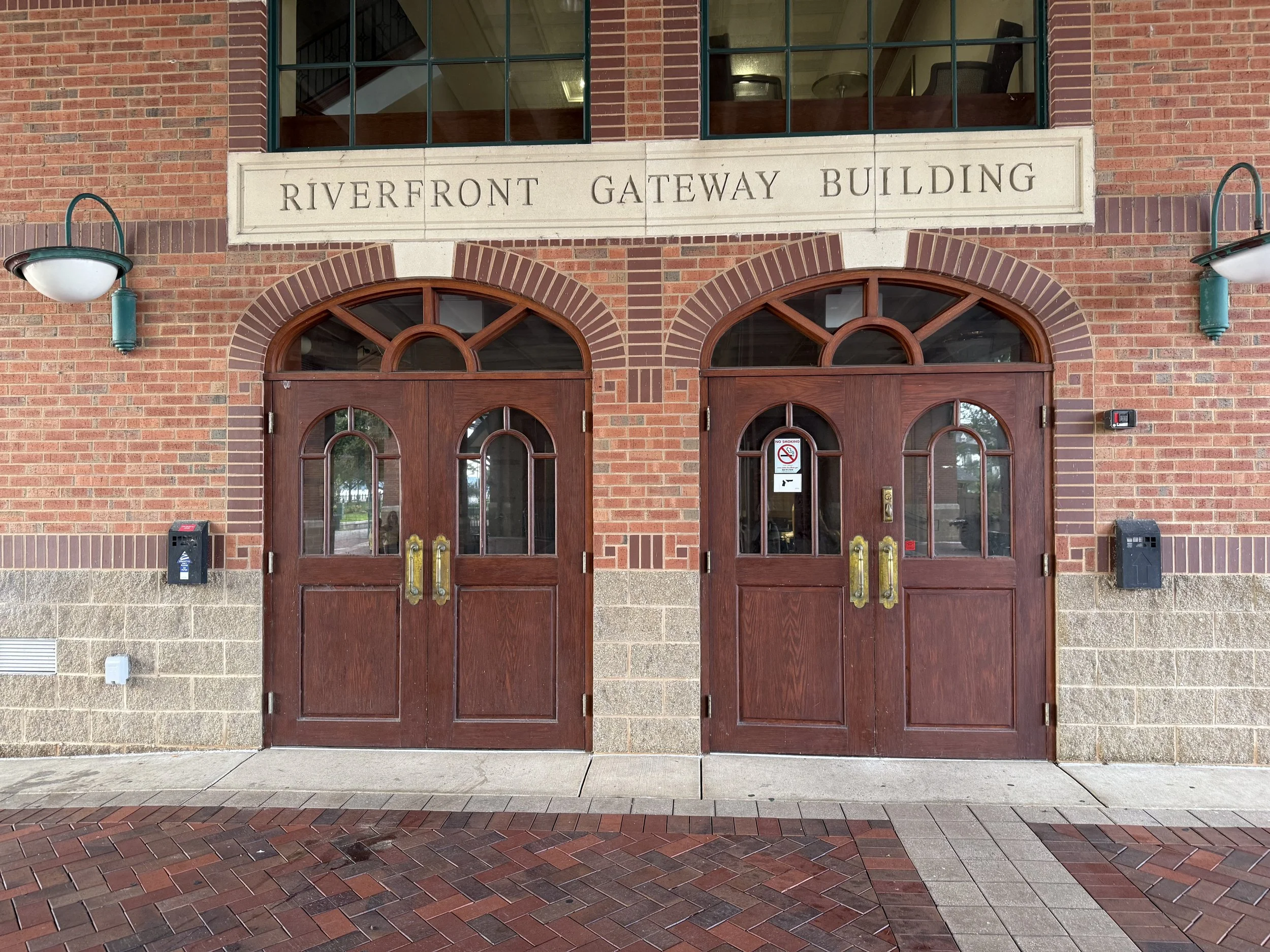 Our ceremony and reception are located on the 3rd floor of the Gateway Building on the Peoria riverfront. You may enter through the rightmost archway of the building (directly below the giant German flag put up for Oktoberfest 🇩🇪). There are two large double doors to enter the building. You may take the stairs or the elevator to the third floor.